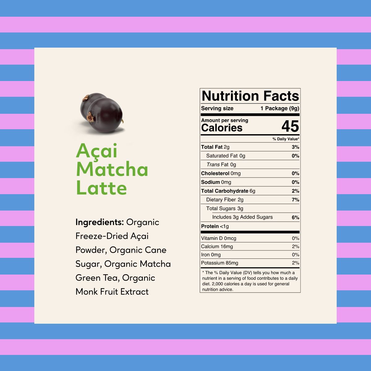 This matcha latte may have a slightly textured finish from the natural açaí fibers--proof of real ingredients.